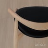 座面は11枚の合板を積み重ねて構成。安定感はもちろんの事、木の質感を存分に楽しめるデザインです。低めに設計された背部分が、コンパクトな印象を受け、空間の圧迫感を無くしてくれます。実際に座ってみると、リラックスをしてくつろげる椅子というよりは、背筋を伸ばして正しい姿勢で座るような座り心地。クッションが少し固めですので、長時間座っても疲れにくく、どんな体勢でも違和感の無い安定した座り心地を味わえます。また水平の座面に、少し前に傾斜したシートは、ダイニングチェアだけではなく、デスクチェアとしても最適。これほどまでにしっかりとした構造なのにスタッキングも可能。カフェやレストランなど、幅広い用途でおすすめです。