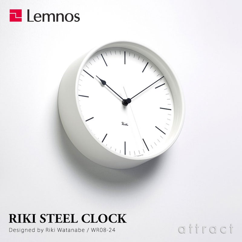 Lemnos レムノス RIKI STEEL CLOCK リキ スチールクロック WR08-24 ウォールクロック 壁掛け時計 電波時計 Φ204mm カラー:2色 デザイン:渡辺 力